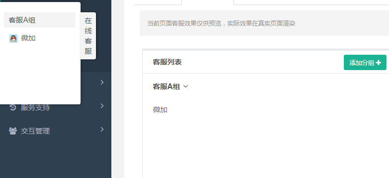 配置我們這個站點的客服,可以控制是否啟用。使用方法入下圖