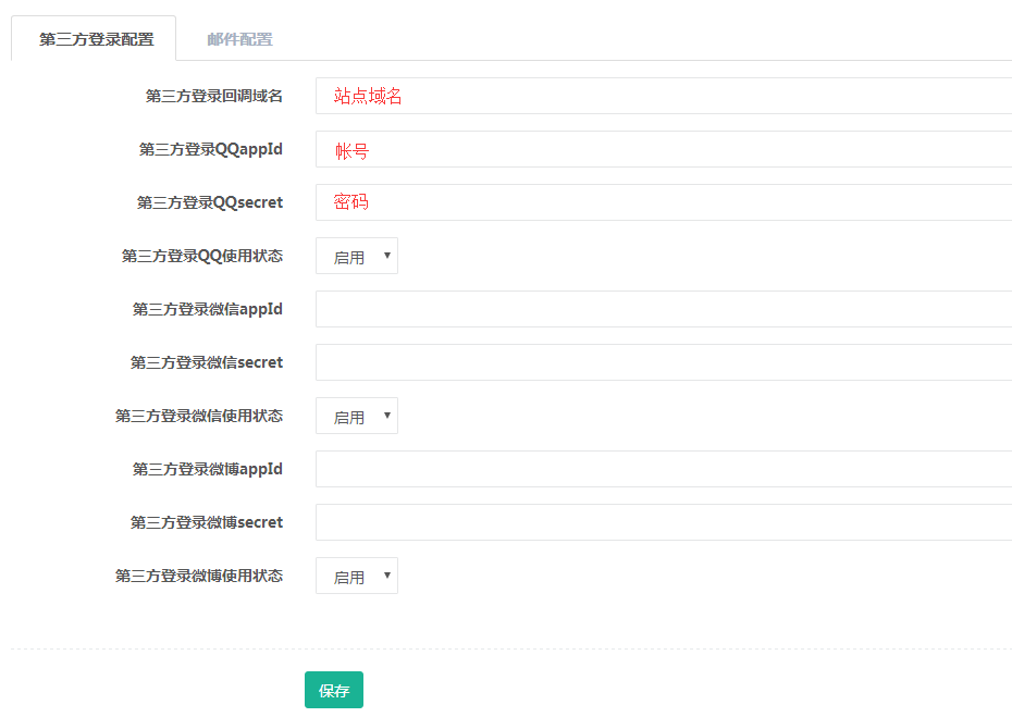 通過填寫相關對應的ID與 密碼,從而是站點達到多種登錄,如下圖: