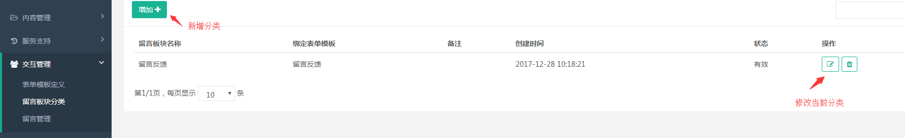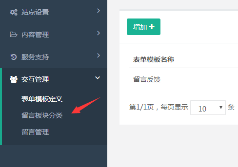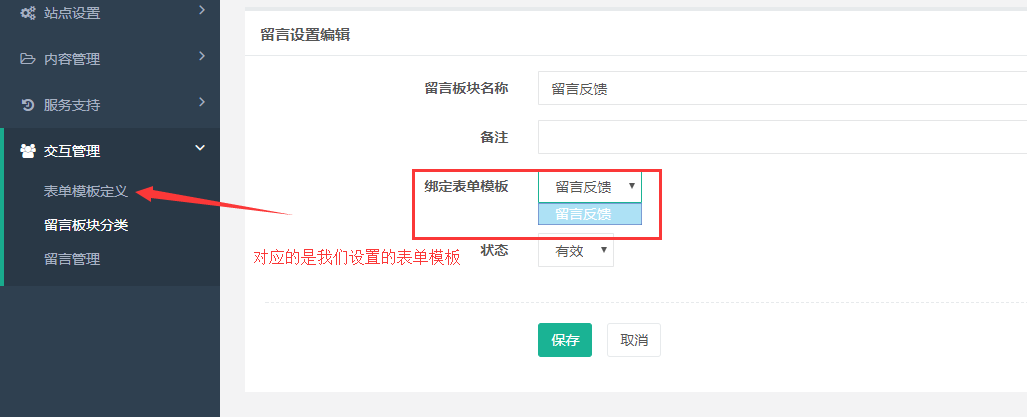 當(dāng)我們這設(shè)置好表單模板后,要到要到留言板塊分類給他進行分類,