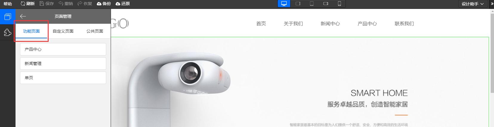 我們在欄目管理處對頁面設置所屬功能,那么這些相對應的所屬功能就會跟著編輯器中功能頁面結構一致。
